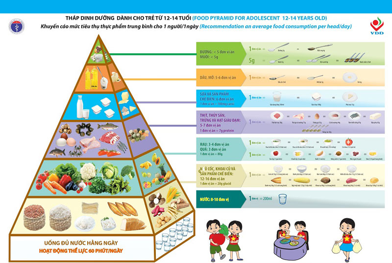 Tháp dinh dưỡng cân đối cho trẻ từ 12 - 14 tuổi của Bộ Y tế
