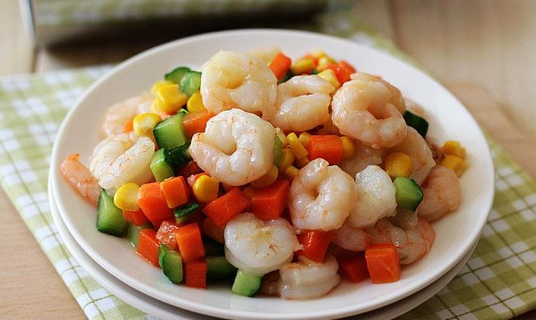 Tôm thẻ đông lạnh xào rau củ – ngọt thịt, dễ tiêu